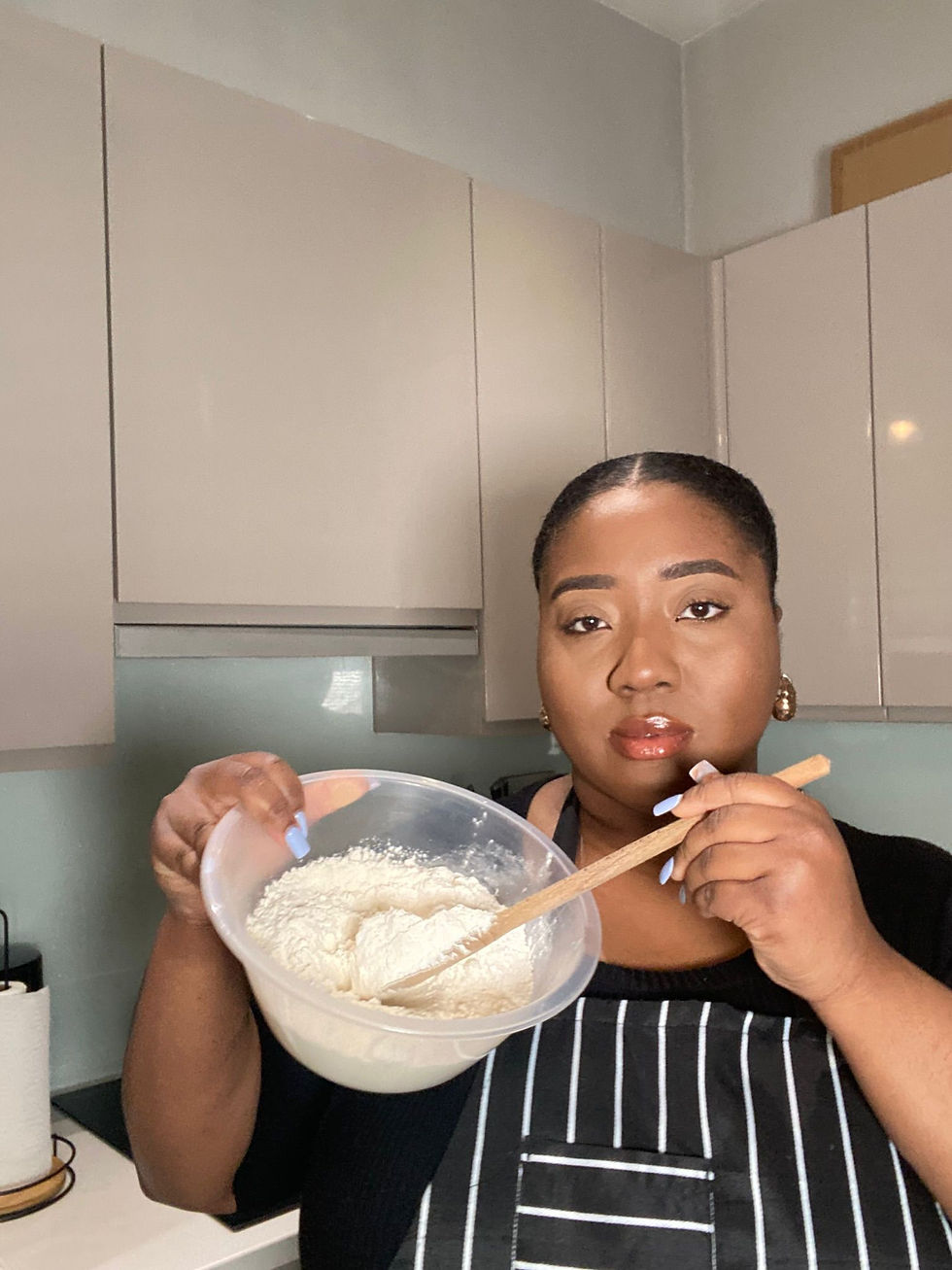 Put the dough into a baking tin and allow to bake at 180 degrees for 35-40 minutes.